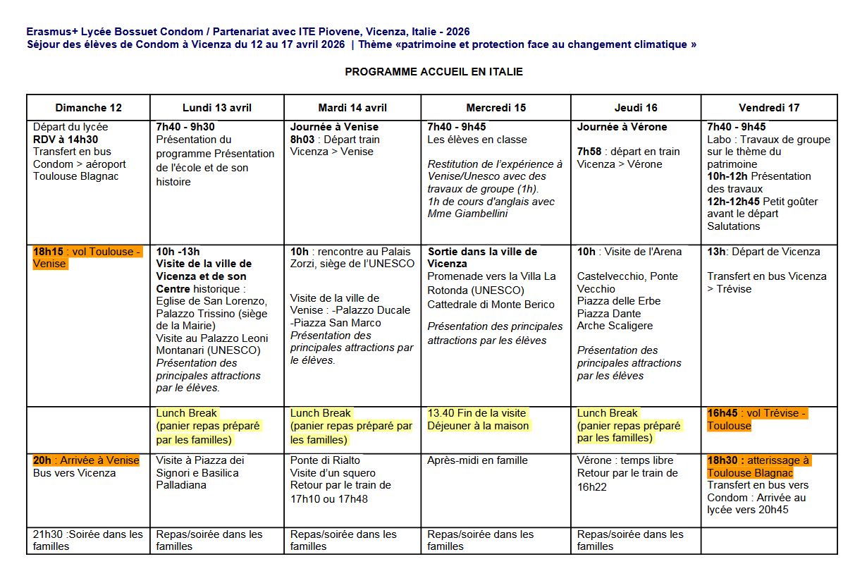 Mobilités Erasmus + Terminales, Italie 2026